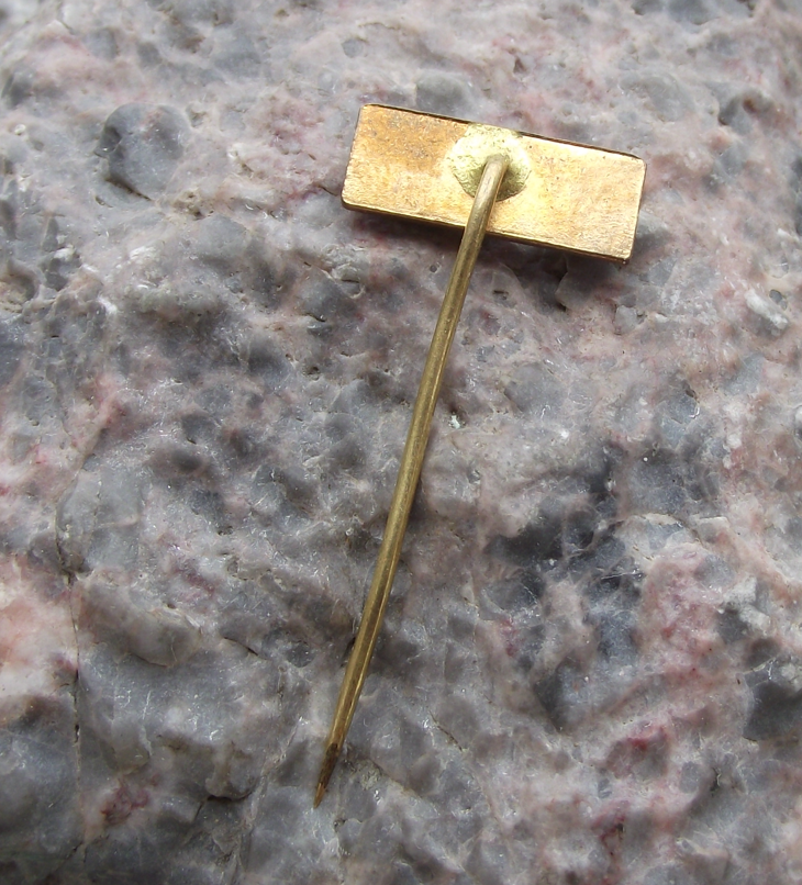 The badge face is 1.6cm wide and has a long, stick pin fastener.