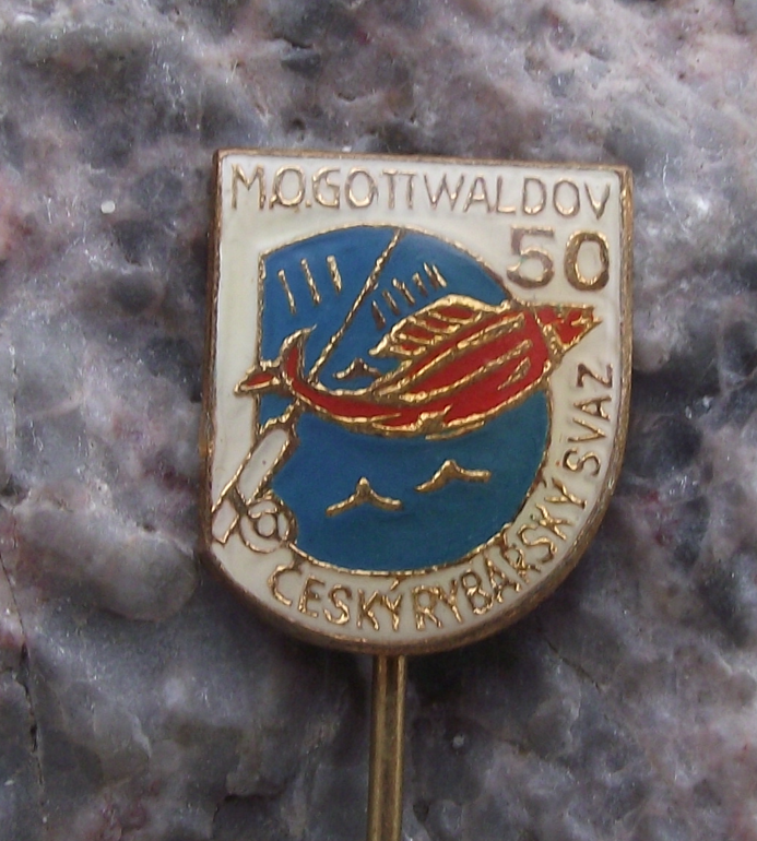 - A pretty, vintage gold coloured metal pin badge from former Czechoslovakia. Celebrating the 50th anniversary of the Český rybářský svaz or Czech Anglers Union in the city of Gottwaldov (now renamed to Zlin)