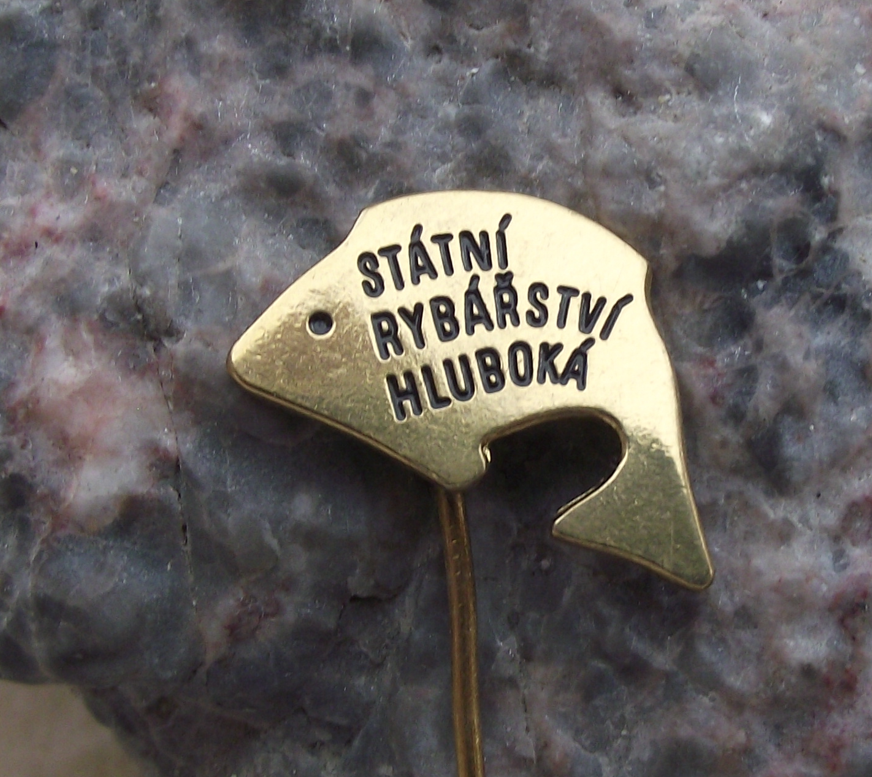 - A pretty vintage metal pin badge advertising the State fisheries of Hluboka Lake in former Czechoslovakia. Featuring a golden fish motif.