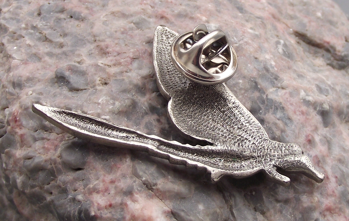 - A pretty silver coloured metal pin badge, probably from the 1980's.