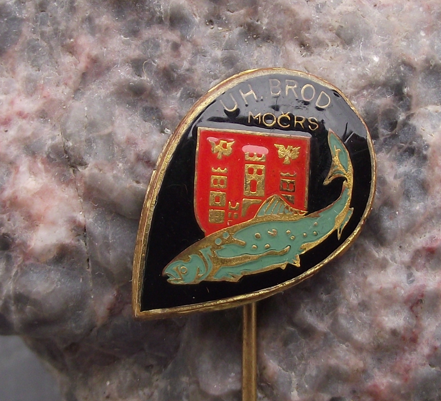 - The badge face is 2cm wide and has a long stick pin style fastener to the rear and features a fish and the crest of Uhersky Brod.