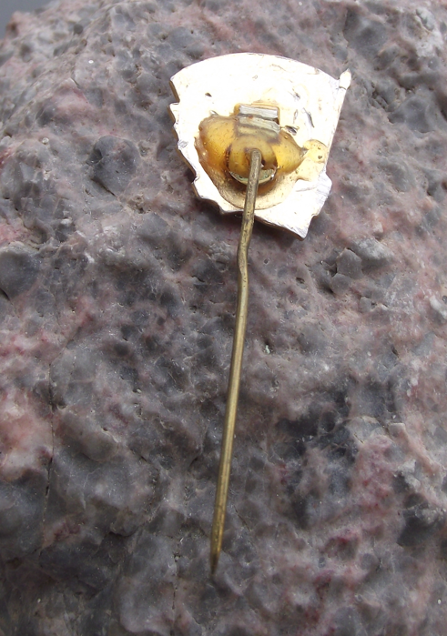 - A pretty, Komsomol pin badge, 2cm wide, made of a gold coloured metal and featuring a superbly detailed Lenin head over the Komsomol Initials with a long stick pin style fastener to the rear.