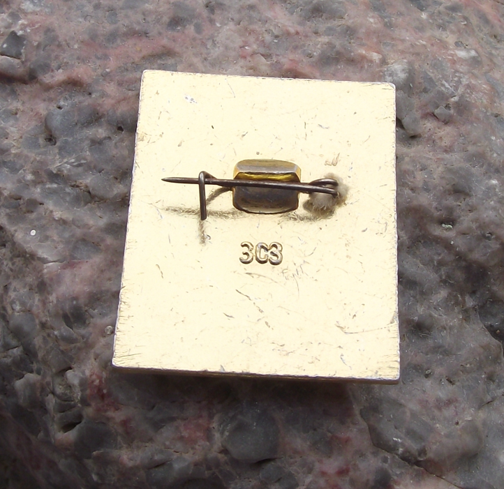 - A pretty pin badge. It is made from silver coloured metal with a safety clasp fastener to the rear. The badge face is 2.6cm high.