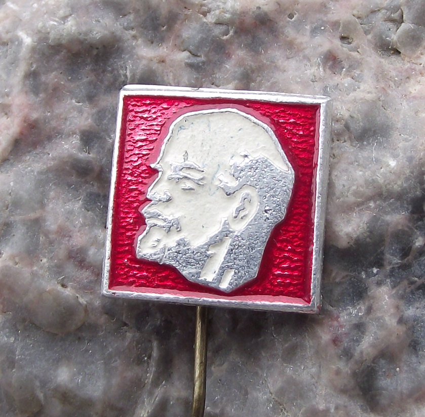 Vintage Lenin Head Bust Profile Communist Leader Square Pin Badge