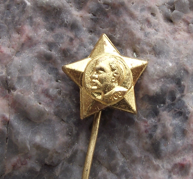 1970 Lenin Head Profile Communist Leader Gold Star Shaped Pin Badge