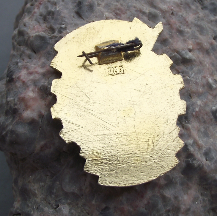 - A pretty Lenin pin badge. It is made from gold coloured metal with a safety clasp fastener to the rear. The badge face is 4cm high.