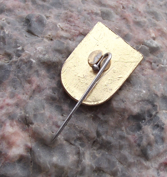 - A very pretty, vintage Polish heraldic pin badge. It is made from metal with painted interiors. The badge face is 1.6cm high and has a short, stick pin fastener to the rear.