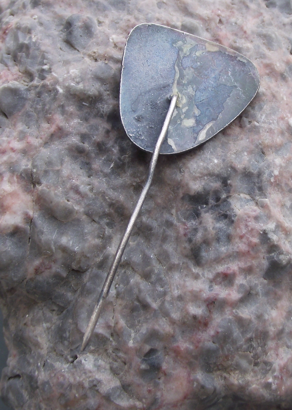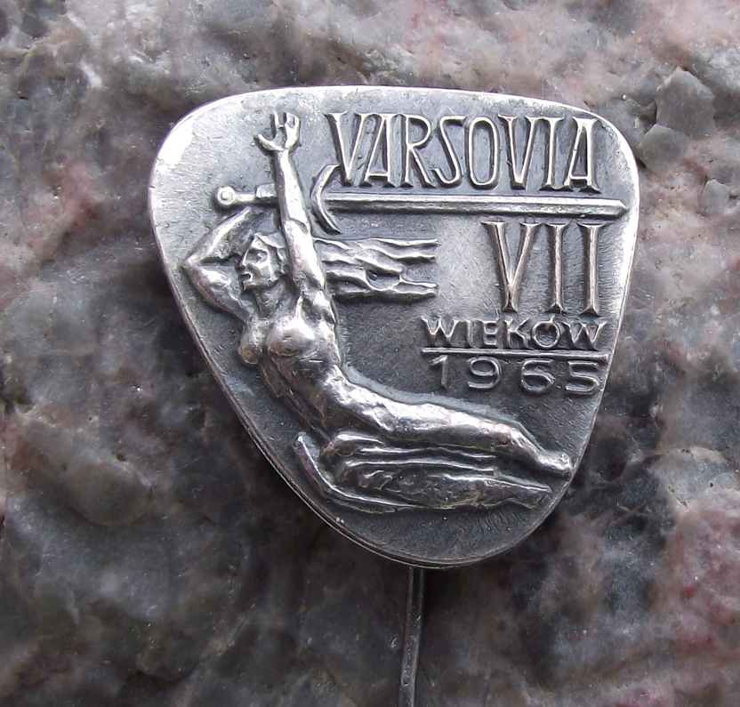 - A very pretty, 1965 Polish pin badge. It is made from a silver coloured metal. The badge face is 2cm high and has a long, stick pin fastener to the rear.