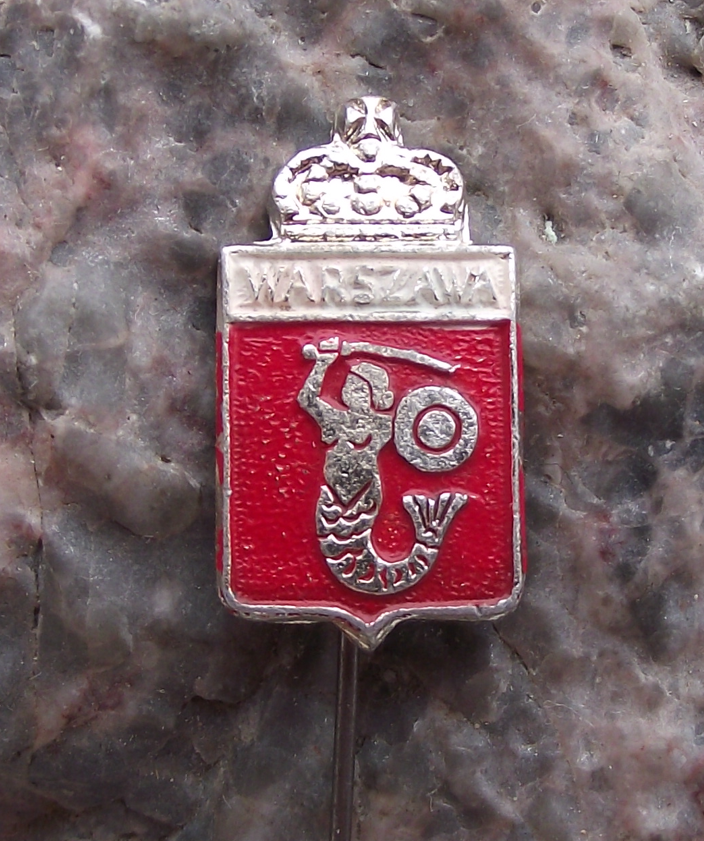 Vintage Polish Coat of Arms Mermaid of Warsaw Poland Syrenka Pin Badge