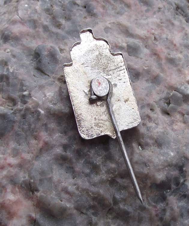 - A very pretty, vintage Polish heraldic pin badge. It is made from silver colored metal. The badge face is 2cm high and has a short, stick pin fastener to the rear.