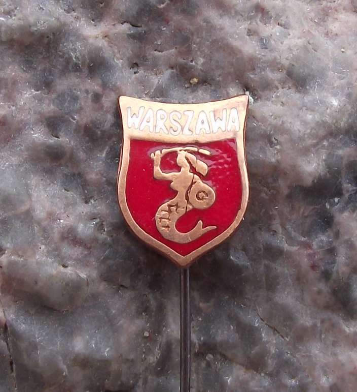 Small Vintage Polish Coat of Arms Mermaid of Warsaw Poland Syrenka Pin Badge