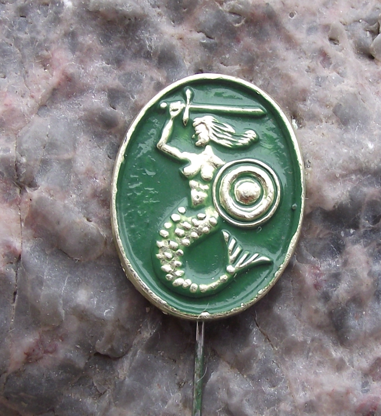 Vintage Polish Mermaid of Warsaw Syrenka Poland City Crest Blue Pin Badge