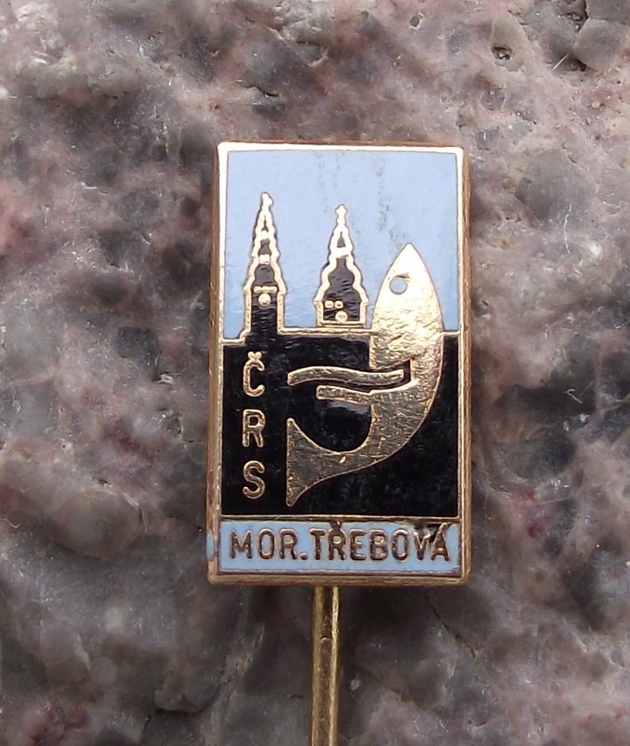- A pretty, vintage gold coloured metal pin badge from moravská třebová in former Czechoslovakia. Worn by members of the local fishing association.