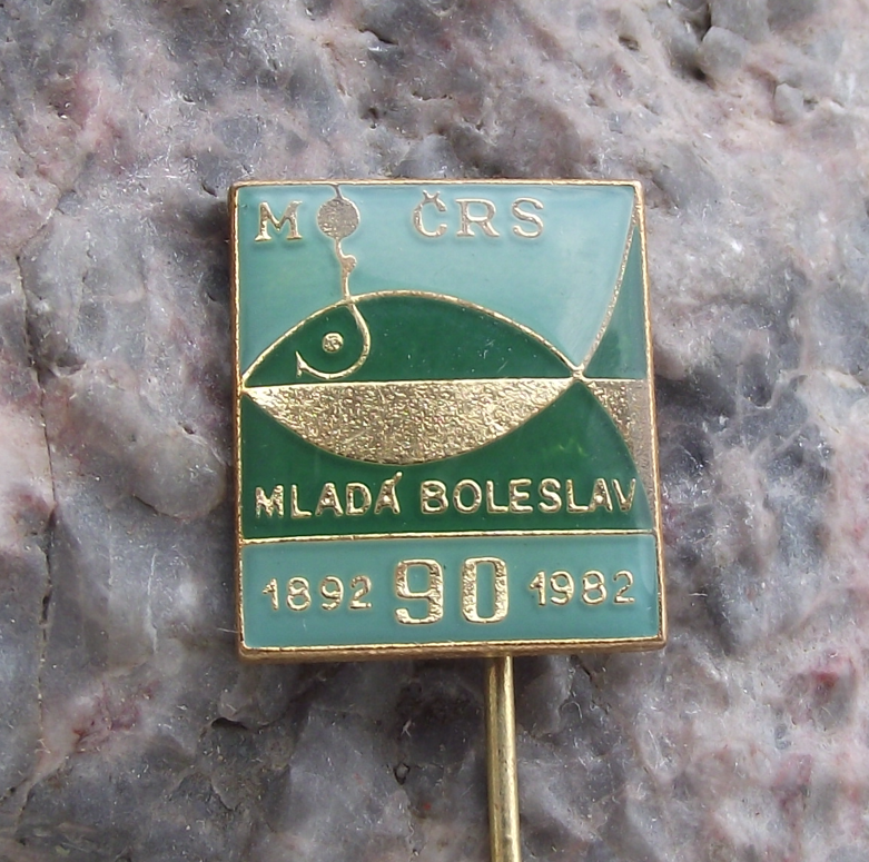 - A pretty, 1982 gold coloured metal pin badge from Mlada Boleslav in former Czechoslovakia. Celebrating the 90th anniversary of the fishing association in Mlada Boleslav.