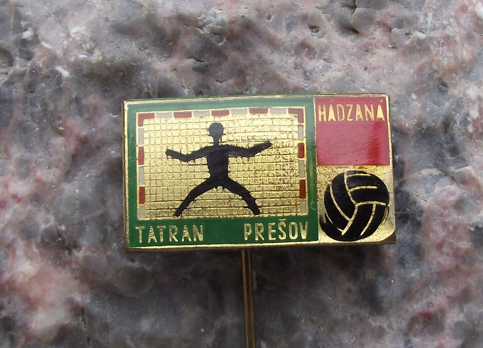 - A very pretty, vintage pin badge made in support of Tatran Presov handball in former Czechoslovakia. It is made from a gold coloured metal. The badge face is 2cm wide and has a long, stick pin fastener to the rear.
