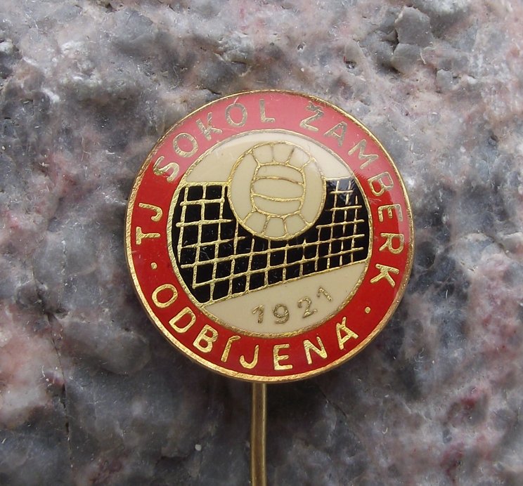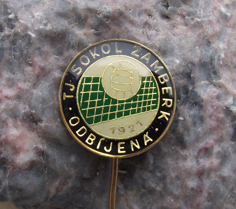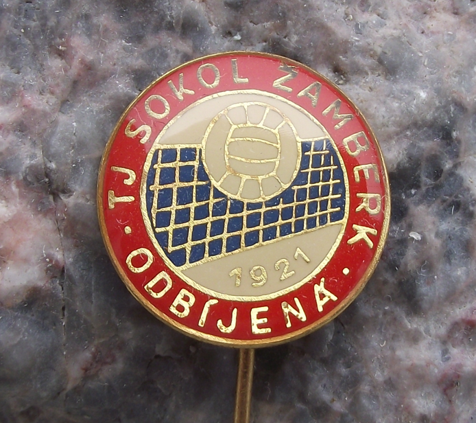 - A very pretty, vintage pin badge from the TJ Sokol Zamberk volleyball club in Zamberk in former Czechoslovakia.