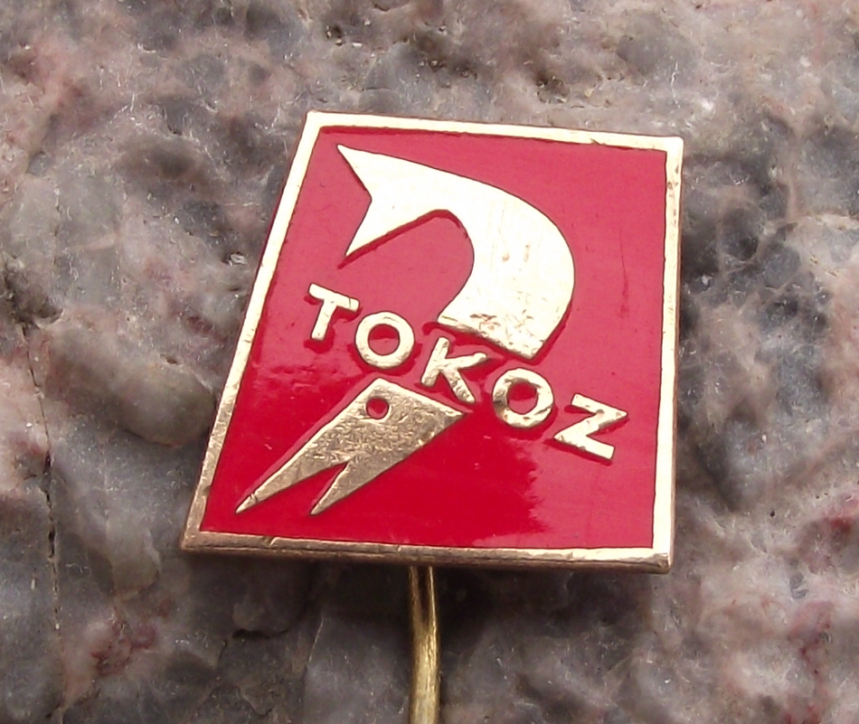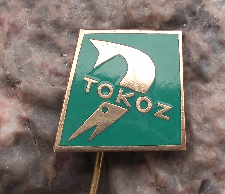 - A pretty, vintage, gold coloured Tokoz advertising pin badge from former Czechoslovakia.