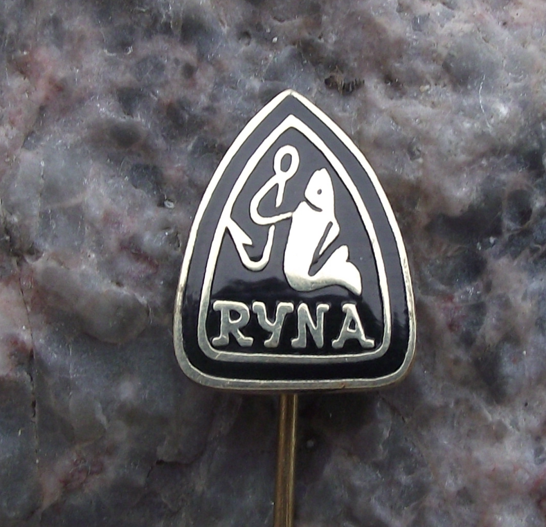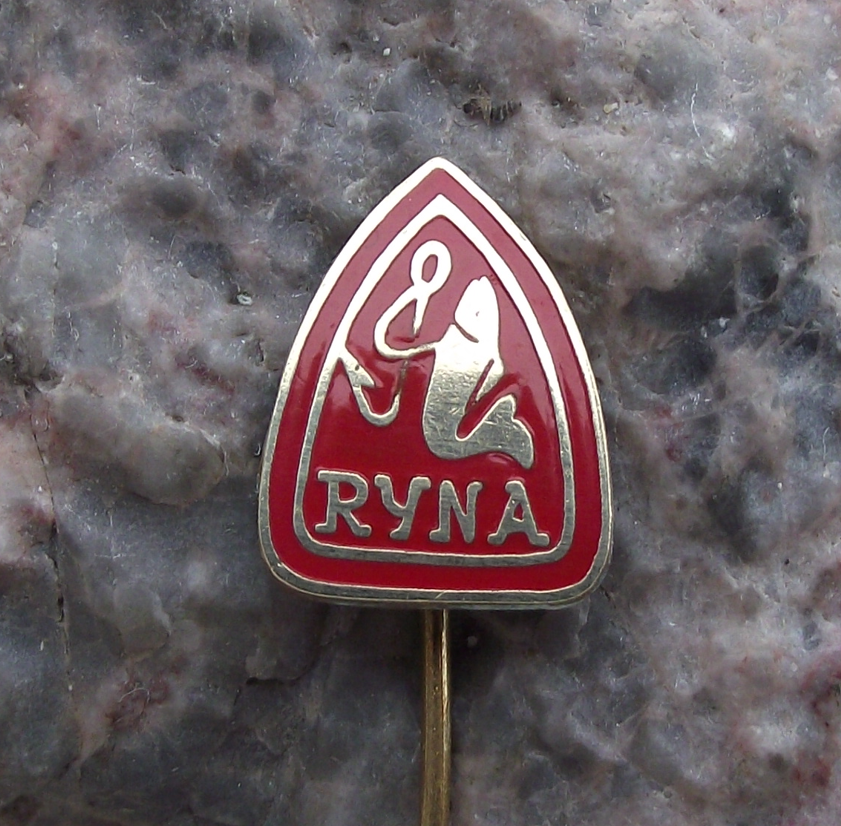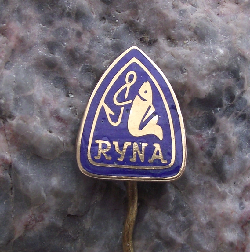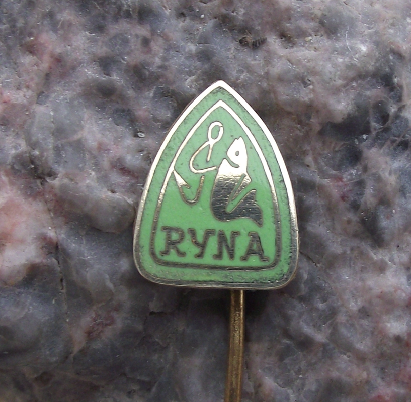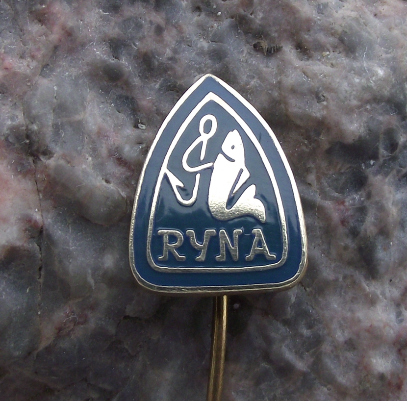 Vintage Ryna Czech Fishing Tackle & Hook Makers Fish Logo Pin Badge