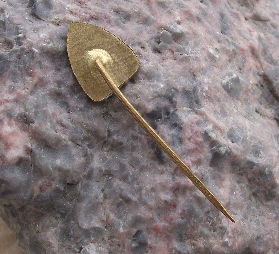 - The badge face is 1.6cm high and has a long stick pin style fastener to the rear.