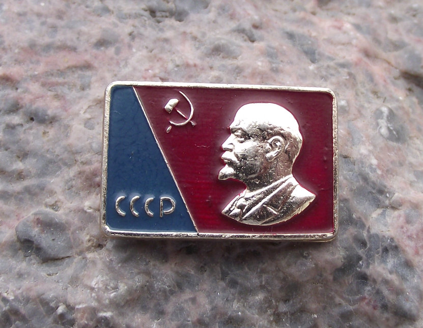 Vintage Soviet Ukraine Blue on Red Flag Lenin Pin Badge