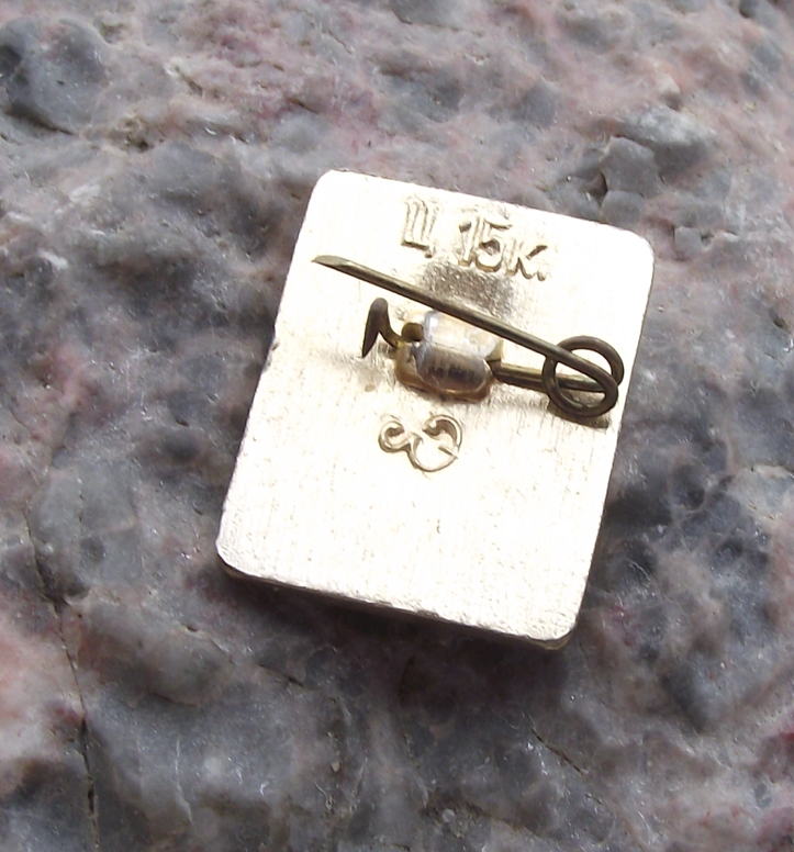 - A silver coloured, metal badge 1.8cm high with a safety clasp style fastener to the rear.