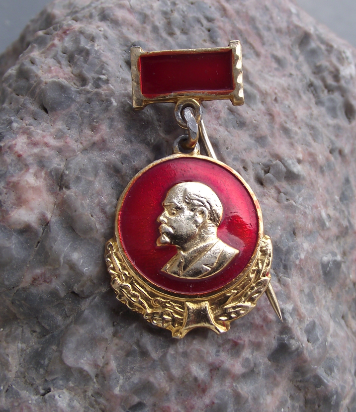 - A pretty, Lenin pin badge, 3.7cm high in total, made of a gold coloured metal and featuring a superbly detailed Lenin.