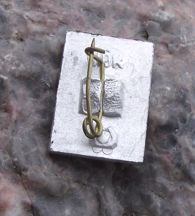 - A silver coloured, metal badge 1.8cm high with a safety clasp style fastener to the rear.