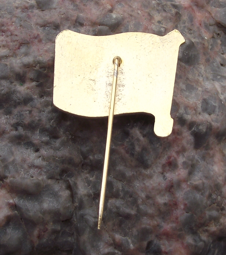 - A gold coloured, metal badge 2.2cm wide with a long, stick pin style fastener to the rear. Featuring the flag of Croatia.