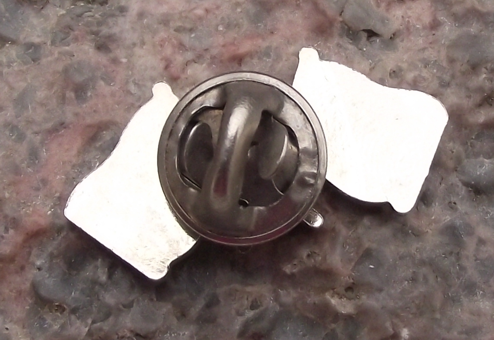 - A silver coloured, metal badge 3cm wide with a modern butterfly clasp style fastener to the rear. Featuring a Gibraltar flag and union Jack crossed in friendship.