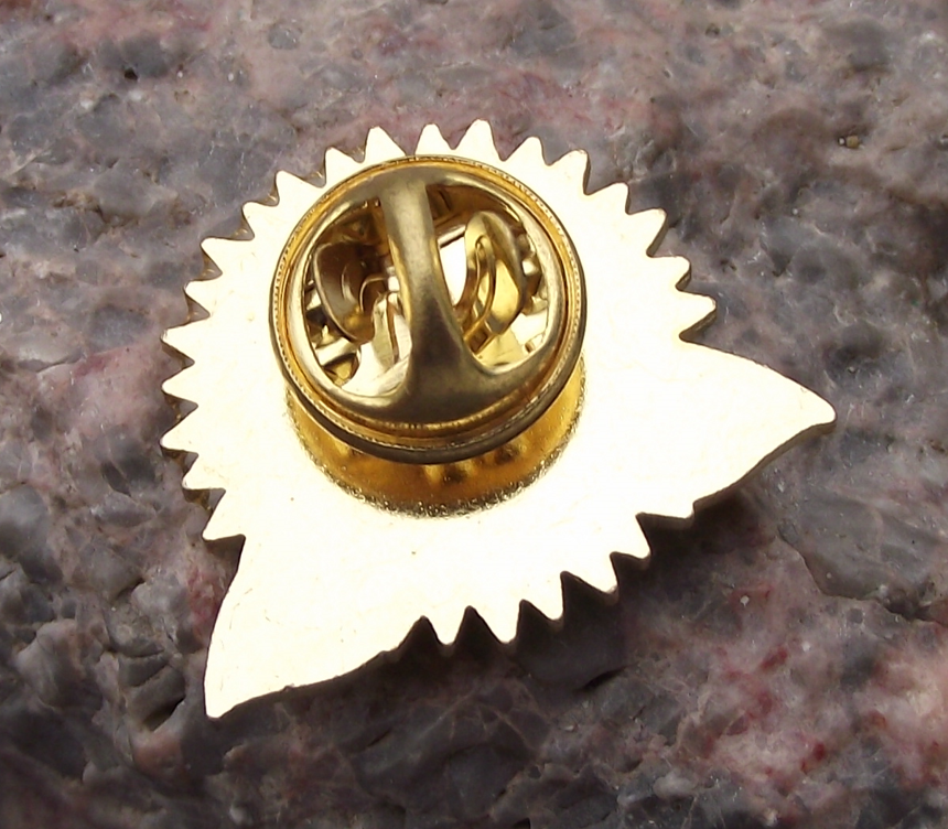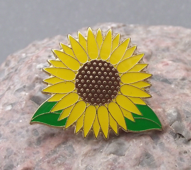 - A pretty, wildlife pin badge featuring a Sunflower. The badge face is 2.5cm wide and has a modern butterfly clasp style fastener to the rear.