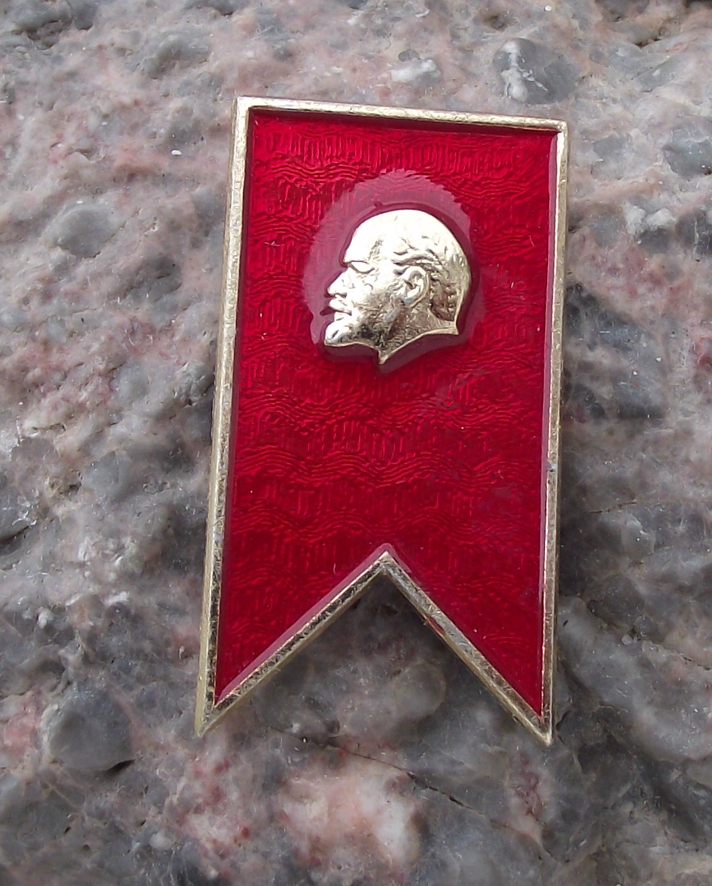 - Featuring Vladimir Lenin's head over the red Soviet flag.
