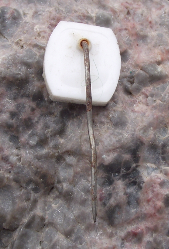 - A very old Czechoslovakian Pilsner Urquell beer pin. It is made of white coloured plastic which was the manufacturing style after World War 2 when plastic was a new material and metal was in short supply.