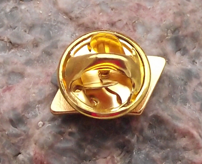 - A gold coloured, metal badge 1.2cm wide with a modern butterfly clasp style fastener to the rear. Featuring a Tunisian flag.