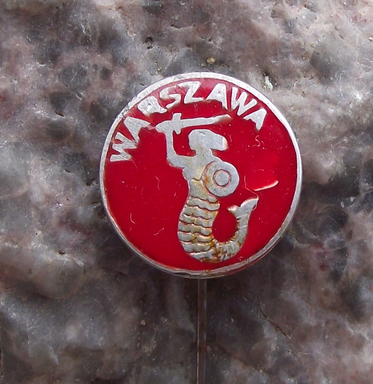 Small Vintage Polish Coat of Arms Warsaw Mermaid Poland Syrenka Circle Pin Badge
