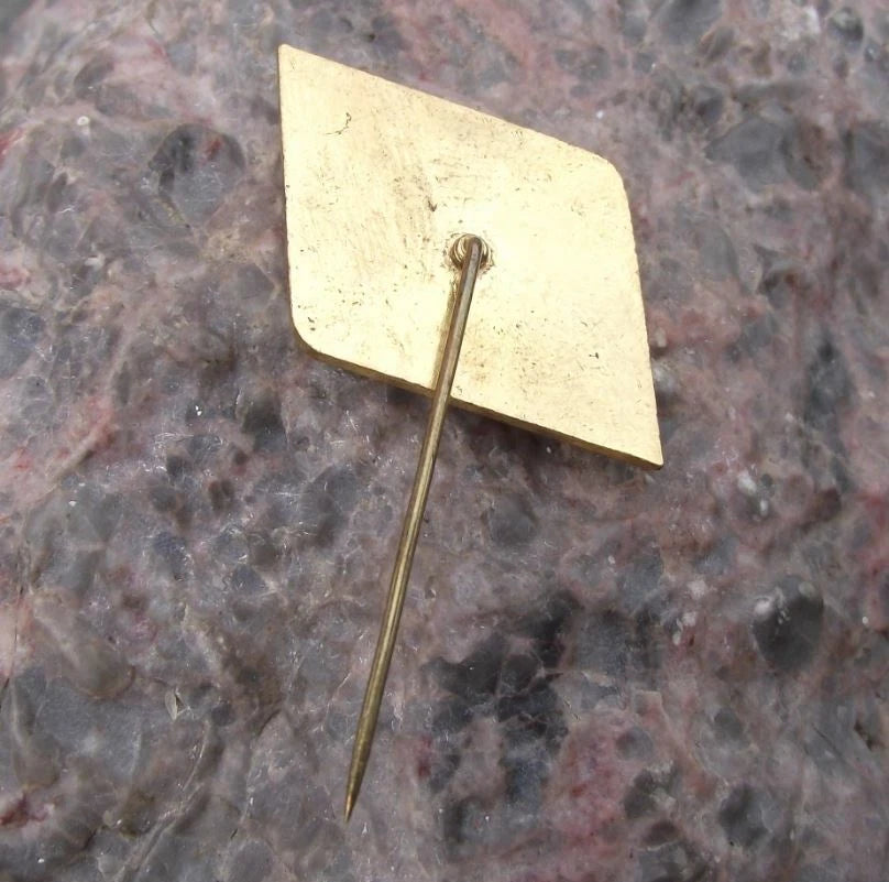 A pretty gold coloured metal tatra advertising pin from former Czechoslovakia. The badge face is 2cm wide and has a stick pin fastener to the rear.