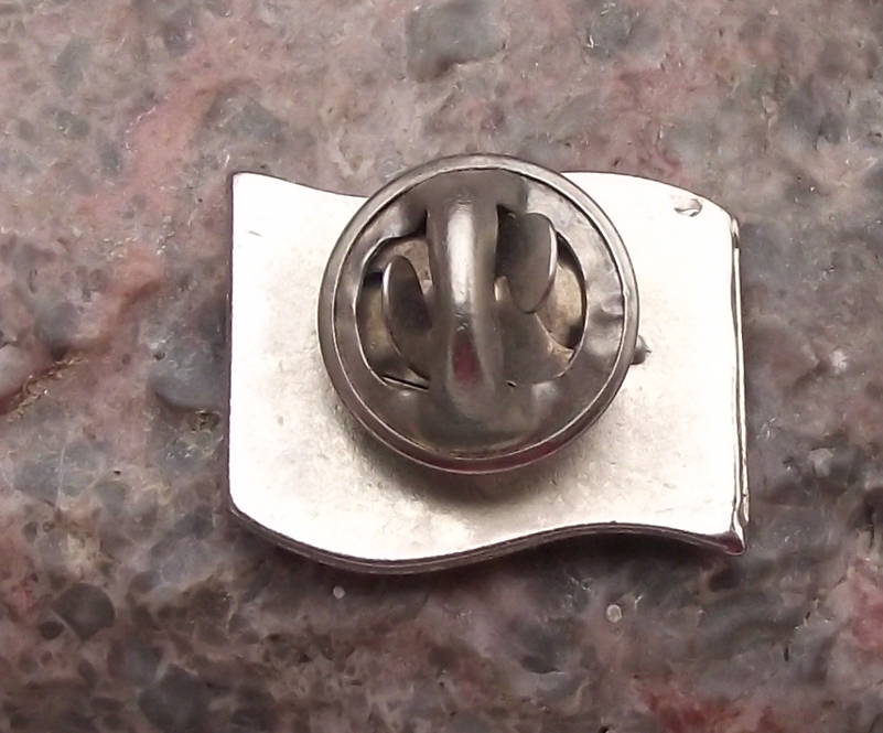 - A silver coloured, metal badge 2cm wide with a modern butterfly clasp style fastener to the rear. Featuring a Tunisian flag lightly fluttering in the wind.