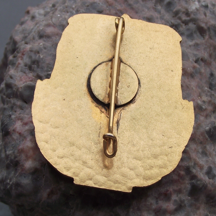 - A vintage gold coloured metal pin badge 4.5cm high with a safety clasp style fastener to the rear. Awarded for completing 200 kilometers.