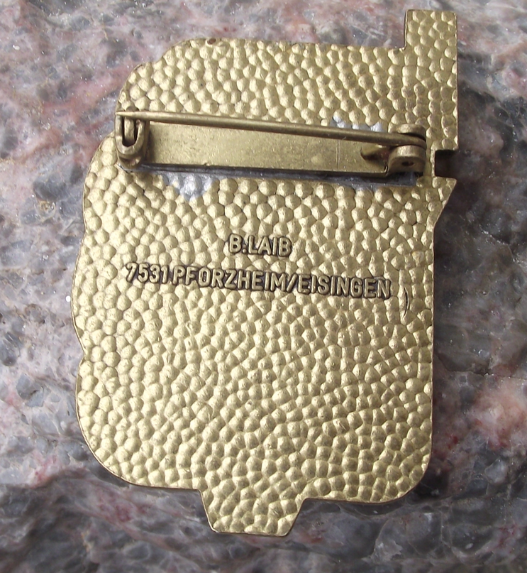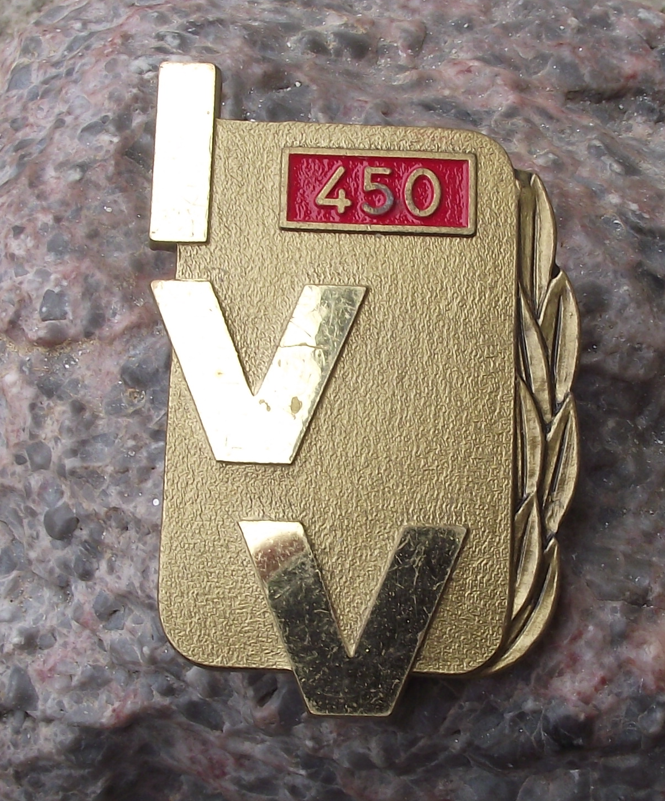 - A vintage gold coloured metal pin badge 5cm high with a safety clasp style fastener to the rear. Awarded for completing 450 kilometers.