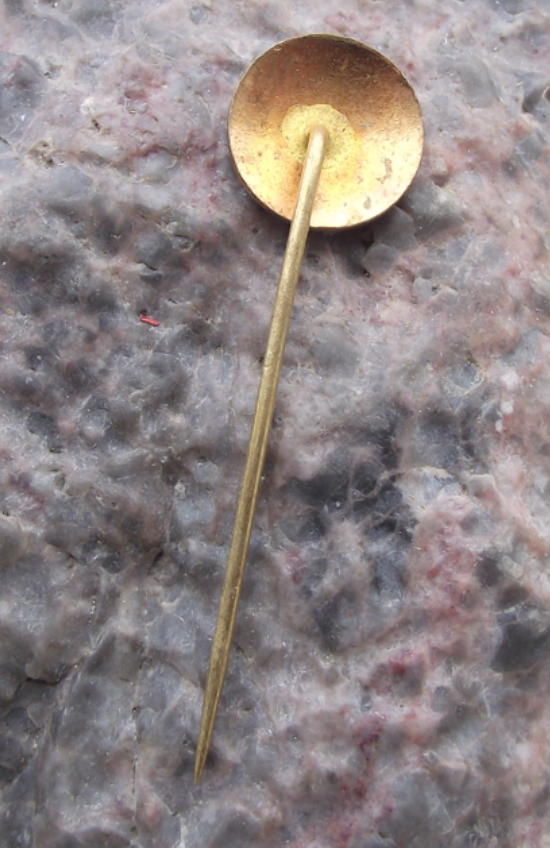 The badge face is 1.3cm high and has a long, stick pin style fastener to the rear.