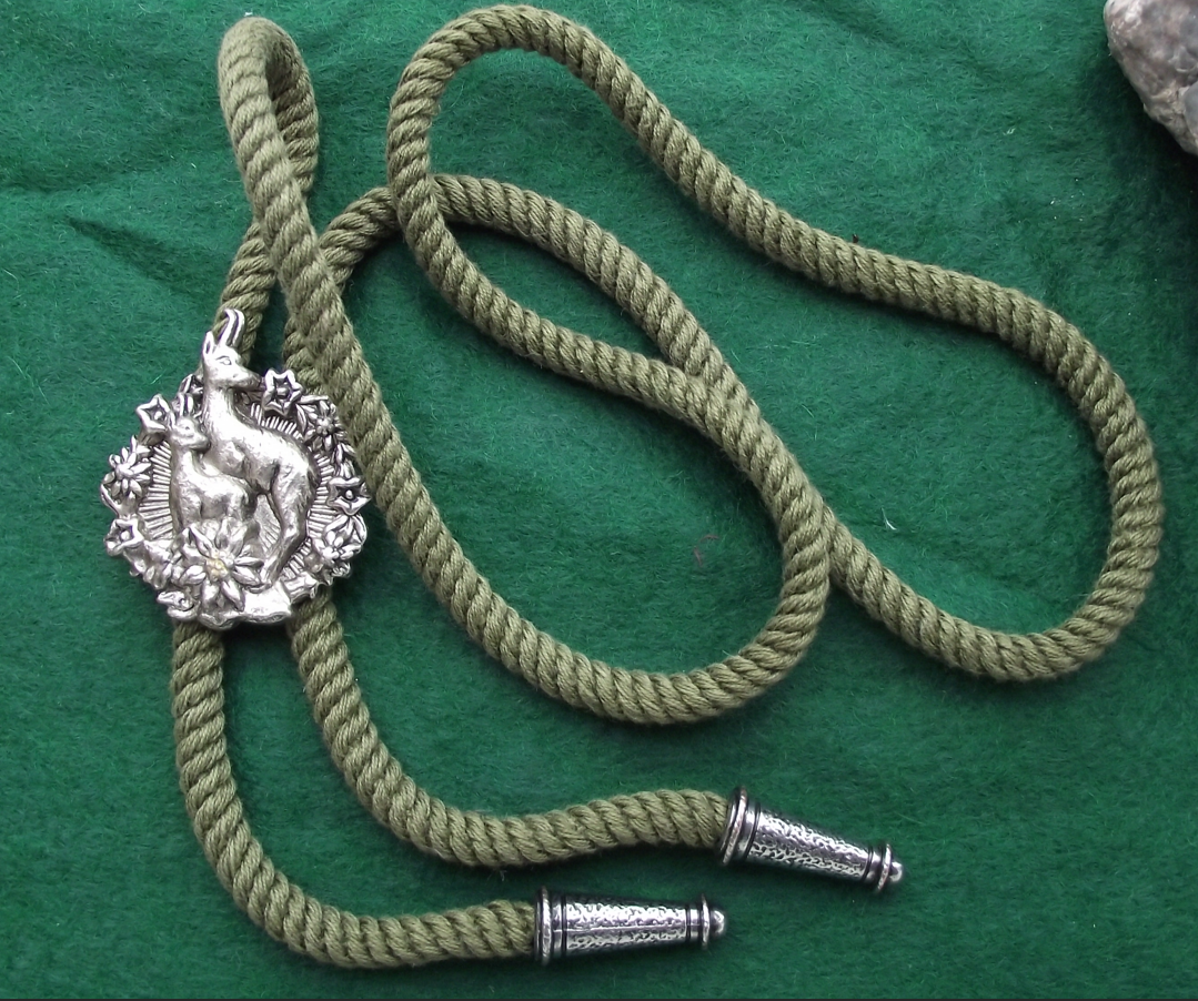 - A rare hunter's lanyard from the Alps region featuring a pair of Chamois deer. The silver metal clasp is 4cm high and the cord is about 75cm length in total.
