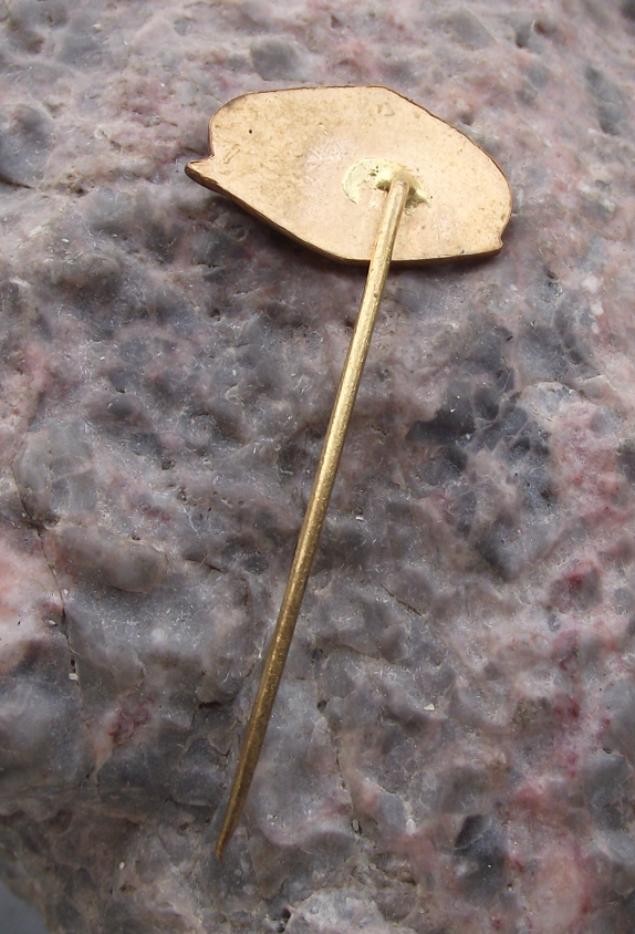The badge face is 1.9cm wide and has a long, stick pin fastener.