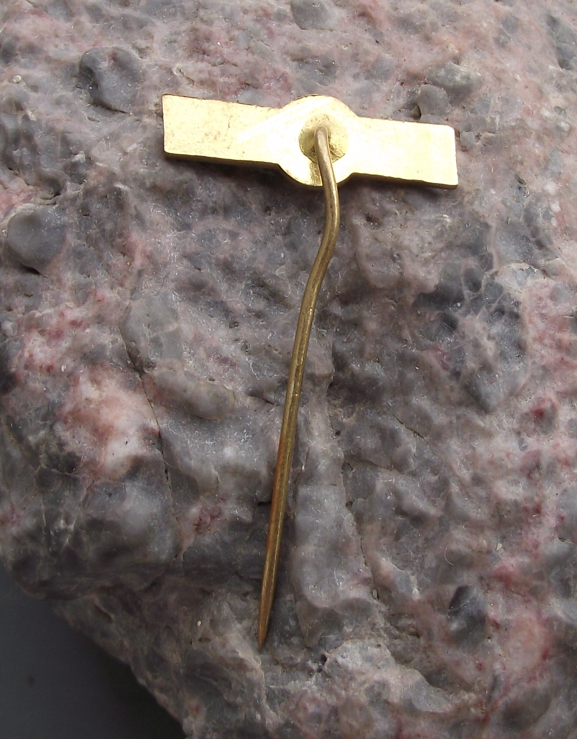 The badge face is 2.5cm wide and has a long, stick pin fastener.