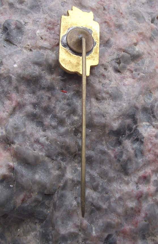 The badge face is 1.7cm high and has a long, stick pin style fastener to the rear.