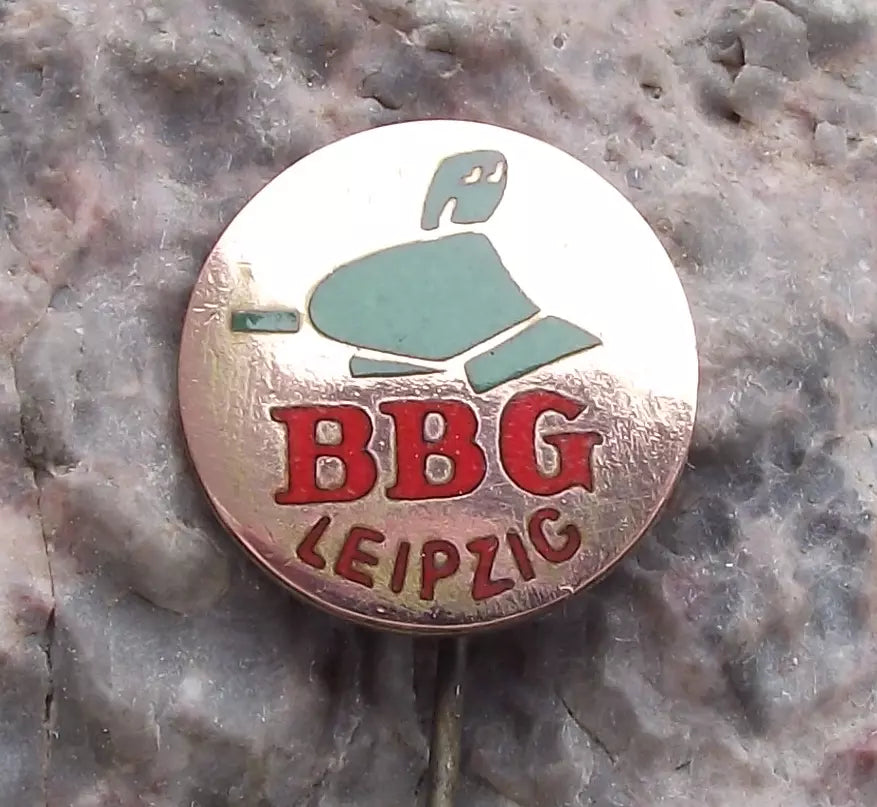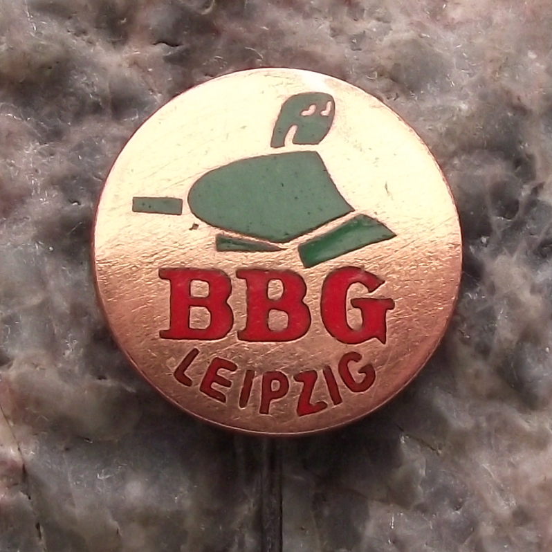 A pretty, gold coloured metal pin badge in good condition from VEB BBG of Leipzig. You can see the logo in use on the old East German brochure below.