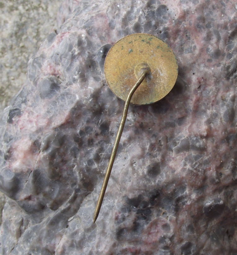 The badge has a long stick pin style fastener and is 1.5cm in diameter.