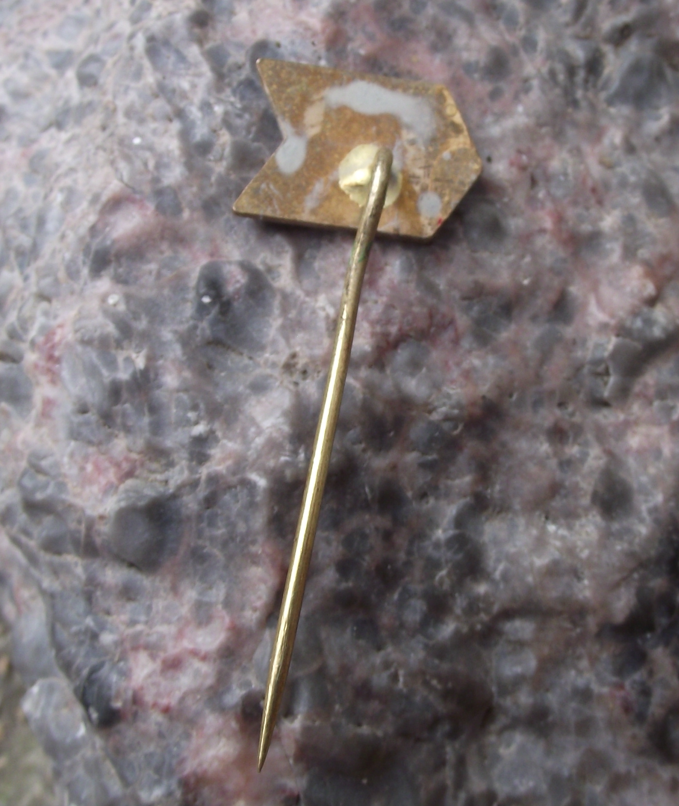 This is a beautiful, gold coloured metal Balkan airlines pin featuring the Bulgarian flag and a Tupolev Tu-154 aircraft which entered service in 1972. The badge face is 1.5cm wide, has a long stick pin style fastener to the rear.