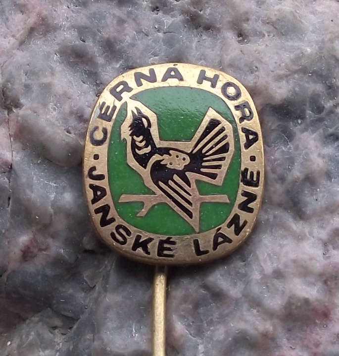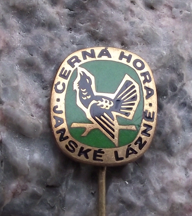 Vintage Cerna Hora Black Mountains Janske Lazne Capercaillie Bird Pin Badge