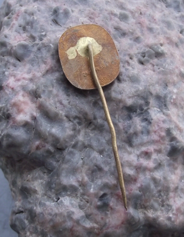 - A very pretty, vintage Czech pin badge. It is made from gold coloured metal, the badge face is 1.7cm high and has a long, stick pin fastener to the rear.