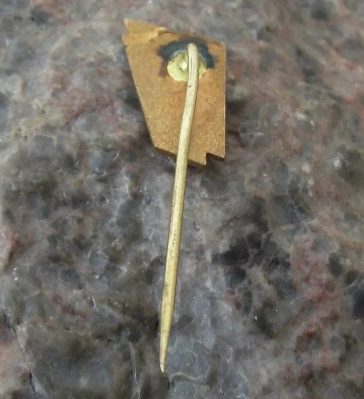 - A gold coloured metal badge with a 1.9cm high badge face and made in support of CKD Bohemians.