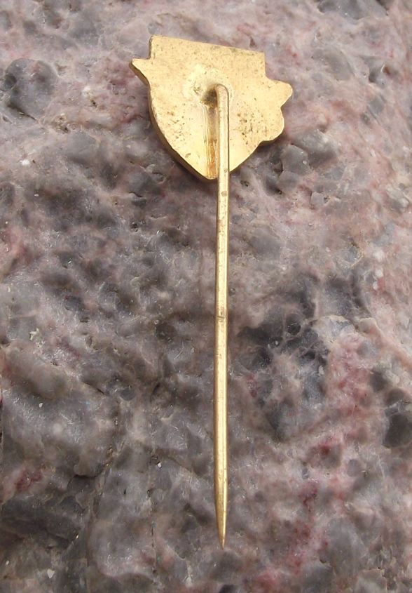The badge face is 1.4cm high and has a long, stick pin style fastener to the rear.
